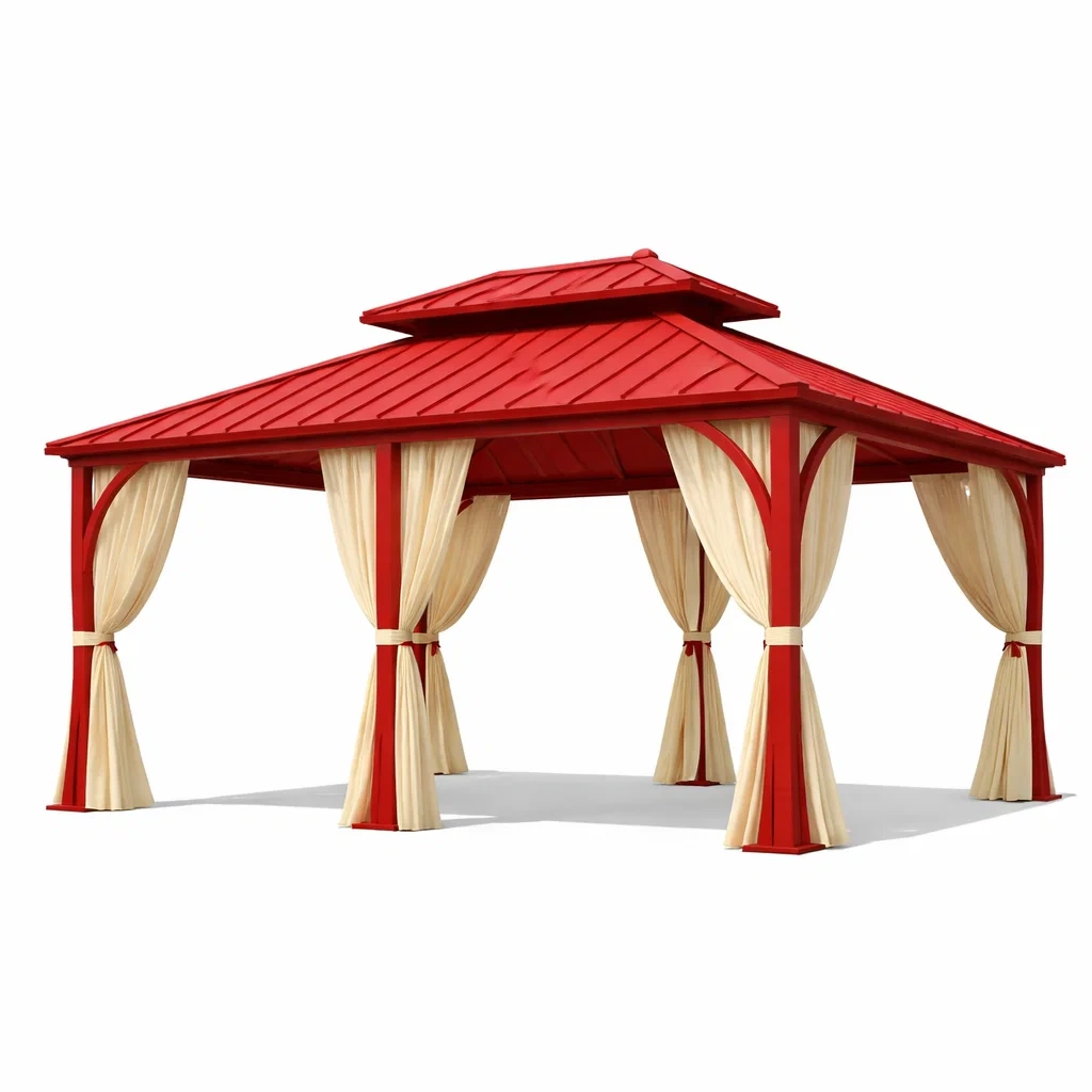 Métal Pavillon avec Toit en Aluminium et Rideaux en Polyester Beige