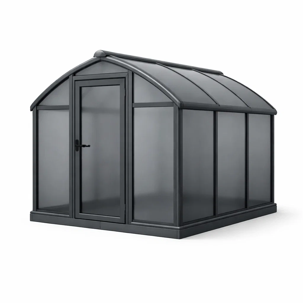 Matériaux : Cadre en aluminium, panneaux en polycarbonate de 4 mm.