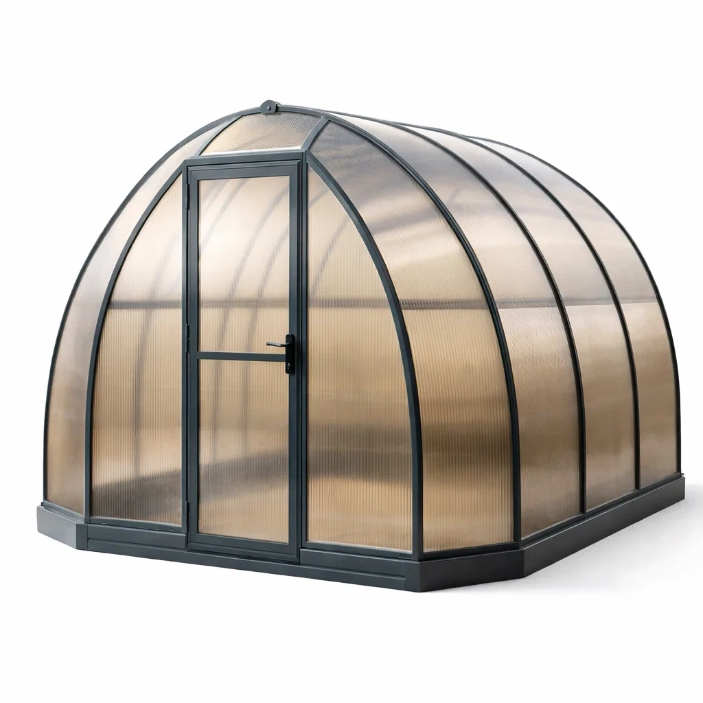 Cette serre de jardin est construite avec un cadre en aluminium robuste et un revêtement en polycarbonate alvéolaire de 6 mm d'épaisseur. Elle offre une protection optimale pour vos plantes.