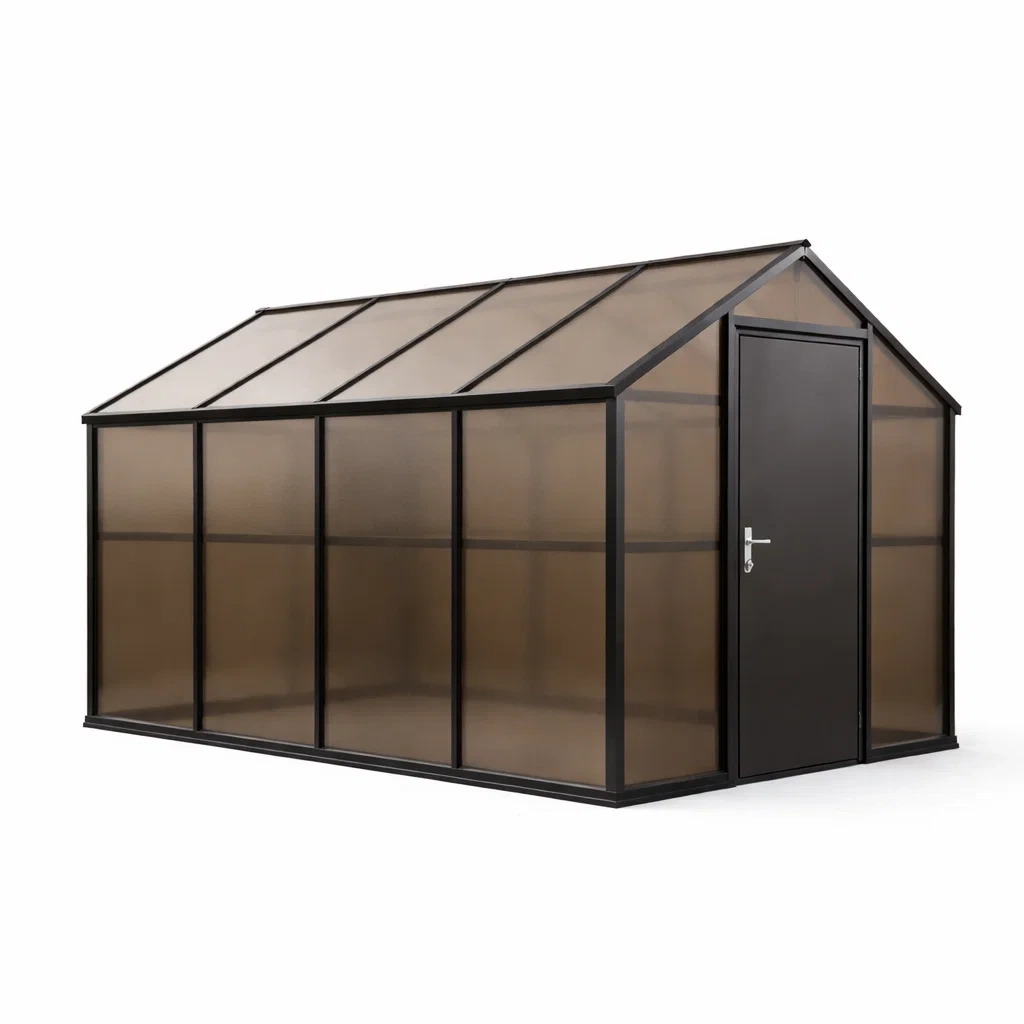 Serre de jardin équipée de panneaux en polycarbonate bronzé de 4 mm d'épaisseur et d'une structure en aluminium.